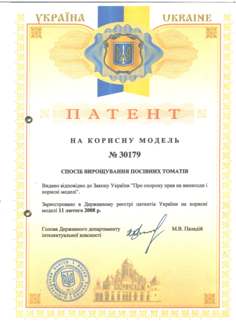 Головна | Про університет | Факультети | Агрономічний факультет | Кафедра землеробства | Свідоцтва і патенти кафедри