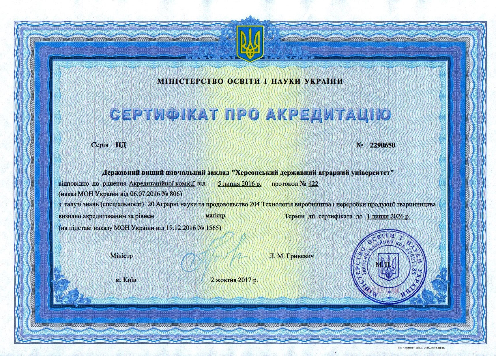 Згідно наказу  Національного агенства і забезпечення якості вищої освіти №1322-Е від 17 вересня 2020 року в період 19 по 21 листопада 2020 року буде проводитися акредитаційна експертиза у віддаленому (дистанційному) режимі за спеціальністю 204 – «Технологія виробництва і переробки продукції тваринництва» освітньої програми «Технологія виробництва і переробки продукції тваринництва» за третім рівнем вищої освіти у Державному вищому навчальному закладі «Херсонський державний аграрний університет».
